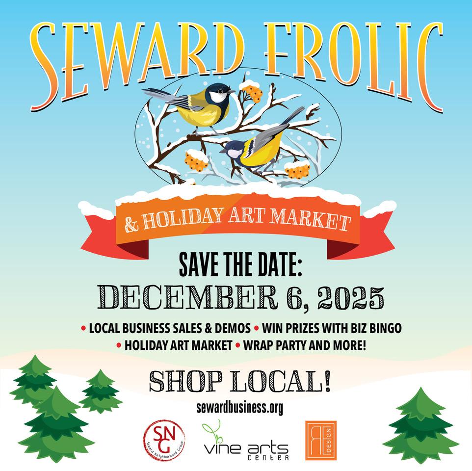 Step into holiday enchantment at the Frolic & Holiday Art Market in Minneapolis’ historic Seward Neighborhood! Organized by Seward Civic and Commerce Association, Seward Neighborhood Group, Vine Arts Center, and Redesign, the event will feature warm and inviting events throughout this cherished district: