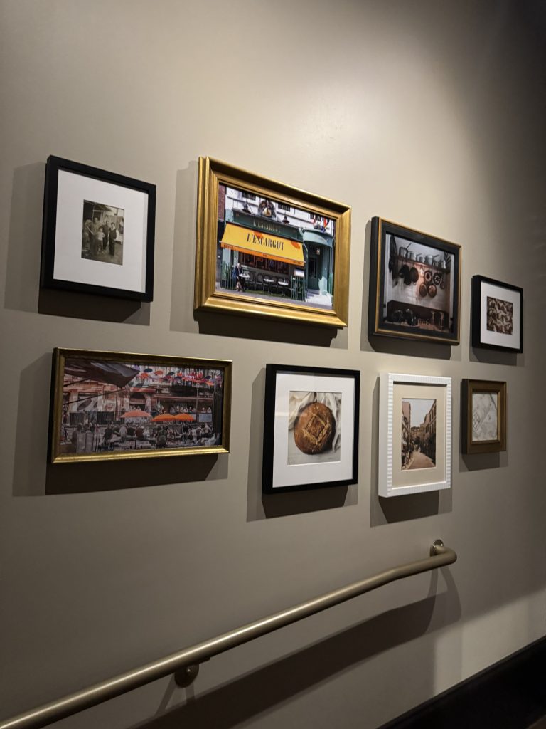 From 7 a.m.-2 p.m., Bellecour is a bakery, and the counter you’ll see when you walk in is the home for pastry and baked goods. When the restaurant reopens at 5 p.m., that counter will become dining space. A shadow box to the right displays Kaysen’s mentor’s chef’s coat, signed by Paul Bocuse. You’ll see a gallery wall near the bar with photos of Place Bellecour in France, photos of Daniel Boulud and Gavin’s family.