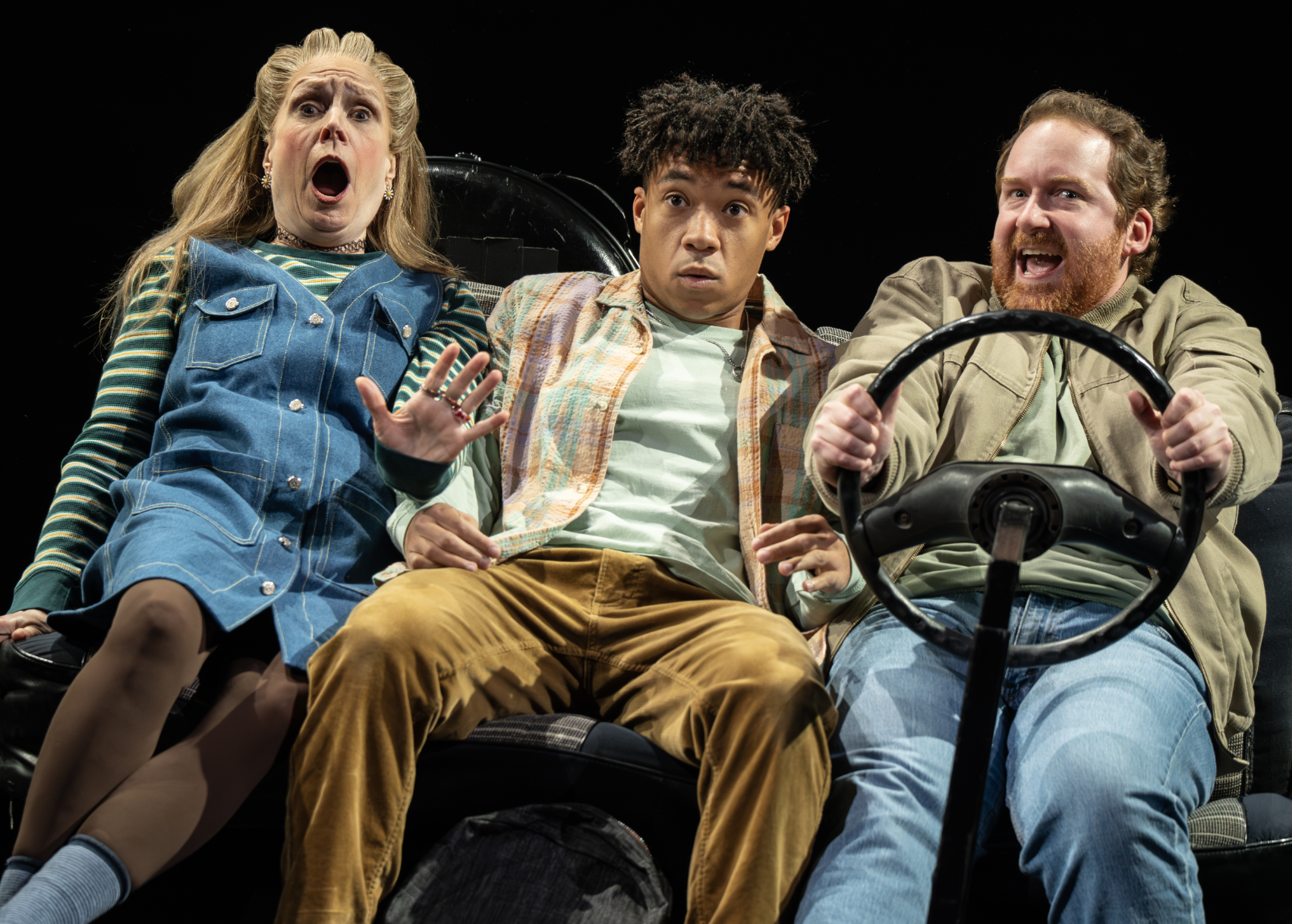 Kimberly’s family life is rounded out by her parents, Pattie (Laura Woyasz) and Buddy (Jim Hogan), and her aunt, Debra (Emily Koch). They all feel settled into their roles as loving, breathing, flawed, and funny humans. Koch’s Debra knows exactly where her laughs are but delivers them with a brash charm and less setup than many comedians. Her comic timing is on full display in her first song, “Better,” where she delivers a character-driven belt for the punchline. This vocal agility mirrors the mental agility of a great stand-up comic, making the song feel spontaneous and alive rather than a rehearsed routine. Kimberly’s classmates onstage remind us of the value of friendship. Their offstage lesson is in the grit required to build a career by touring the country. These four young actors are sure to have full careers ahead of them. What was most remarkable was the energy and connection shared between the cast and the audience.